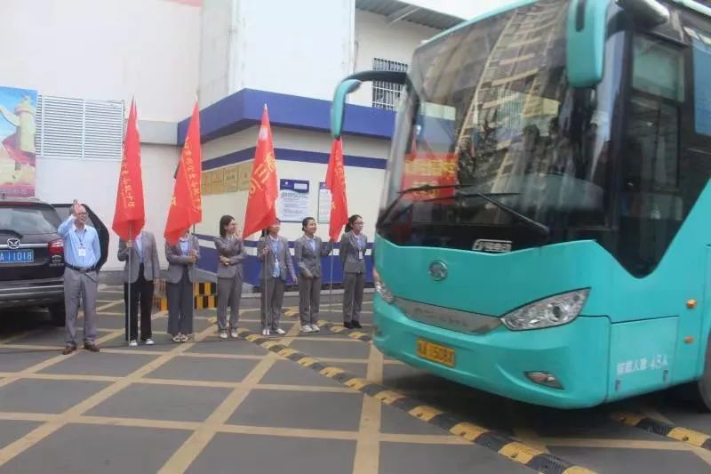 7:50分,在老師的組織下,同學們有秩序地登車。