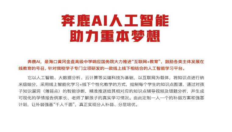 奔鹿A.I. 補(bǔ)弱培優(yōu) Categories 學(xué)校特色 Date 2021年5月19日 管理員 Previous post ??邳S岡金盤高級(jí)中學(xué)——十八而至,放飛理想2021屆成人禮 2021年5月19日 Next post 大周作息制-3年多上2250節(jié)課 2021年5月20日 You may also like 大周作息制-3年多上2250節(jié)課 20 5月, 2021 ??邳S岡金盤高級(jí)中學(xué)——國(guó)旗護(hù)衛(wèi)隊(duì) 20 3月, 2019 九個(gè)措施–成就海南黃岡新模式 18 3月, 2019